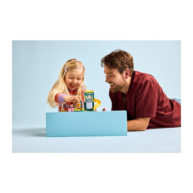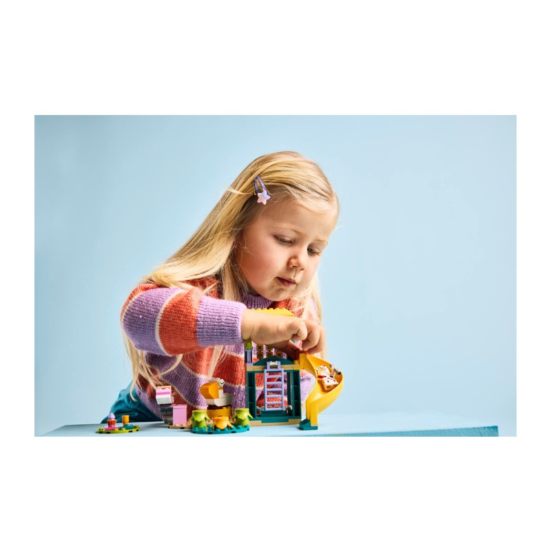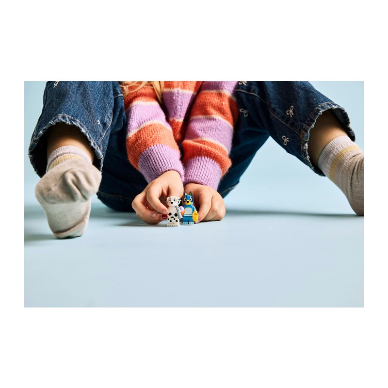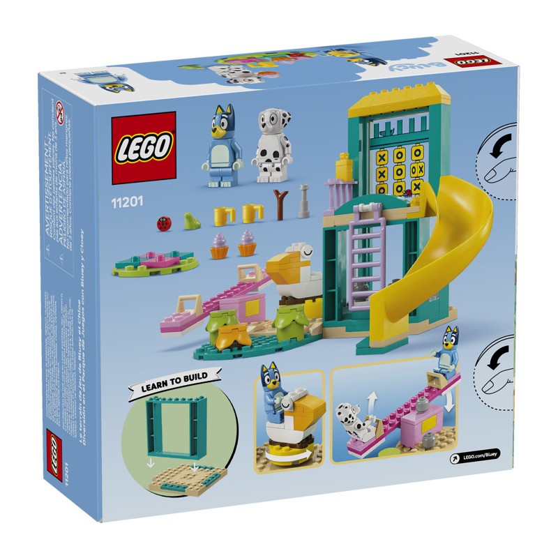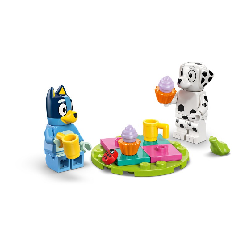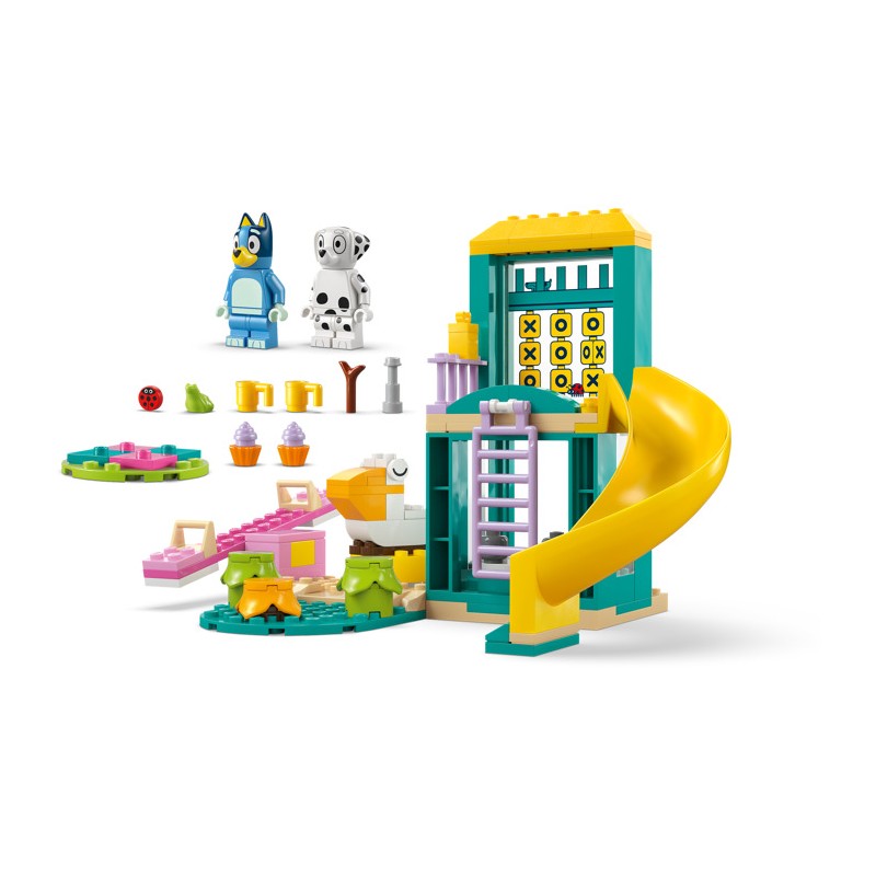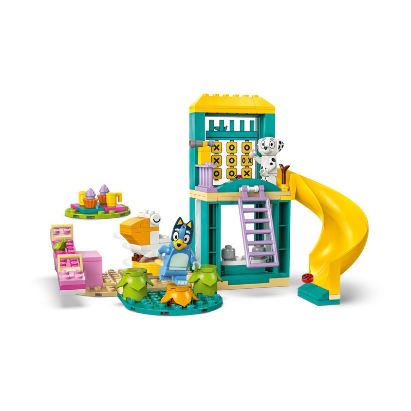 Этот универсальный набор для дошкольников включает в себя минифигурки популярных собак из сериала Блюи и Хлои на яркой игровой площадке с качелями, горкой, детским игровым комплексом и вращающимся аттракционом «Пеликан». В набор также входят 3 растения, между которыми персонажи могут прыгать, башня с телескопом и зона для пикника с напитками и пирожными. Внутри коробки находятся отдельные пакеты с одной сборной моделью, а также большой стартовый кубик и простые инструкции, которые сделают сборку быстрой и увлекательной для маленьких строителей. Интуитивно понятные инструкции представлены в виде красочной брошюры.