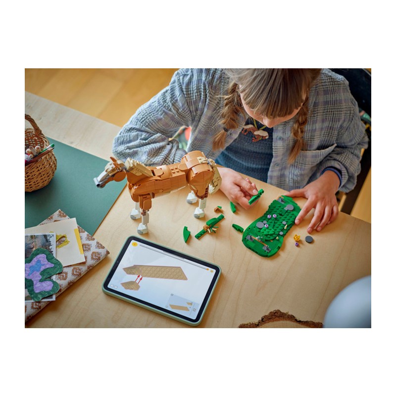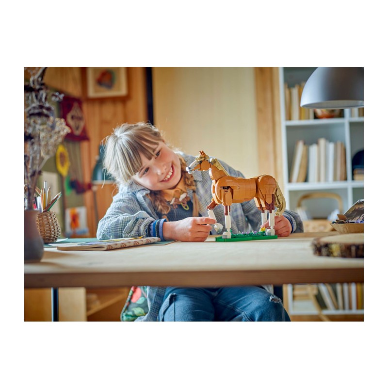 Девочки и мальчики от 9 лет, любящие животных, смогут насладиться увлекательными историями с этим конструктором «Прекрасная лошадка» (31166). Эта фигурка лошадки может двигать головой, шеей, бёдрами, лодыжками, хвостом и одним коленом. Подставка с имитацией травы позволяет детям ставить её в трёх различных позах: на трёх или четырёх ногах, а также на двух задних.