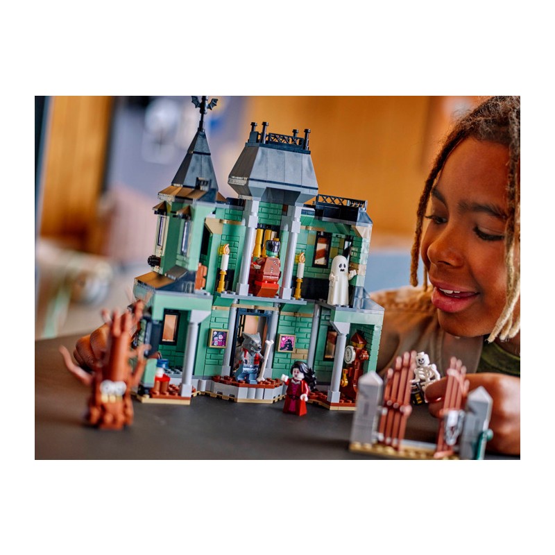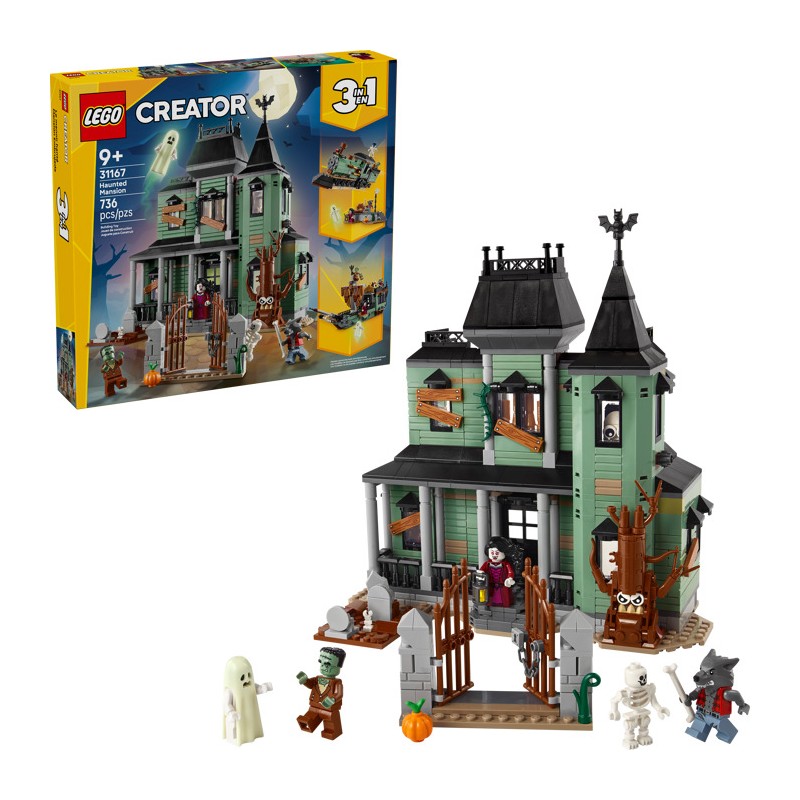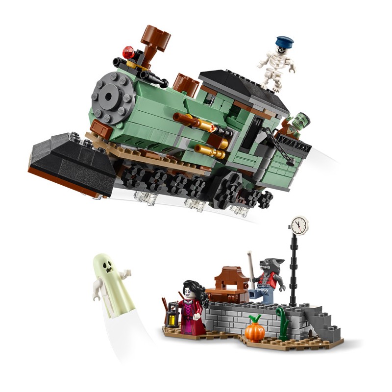 Мальчикам и девочкам от 9 лет и старше предлагается три варианта сборки из одних и тех же кубиков: интерактивный дом с привидениями, игрушечный корабль с привидениями или поезд с привидениями и платформой. В каждом наборе пять минифигурок: оборотень, вампир, привидение в светящемся в темноте плаще, монстр Франкенштейна и скелет.