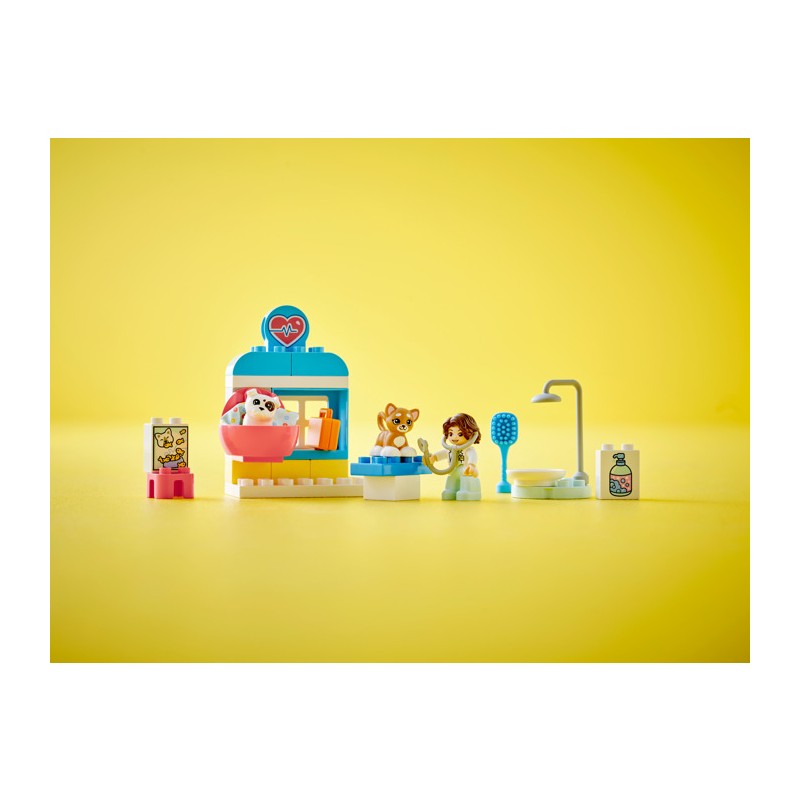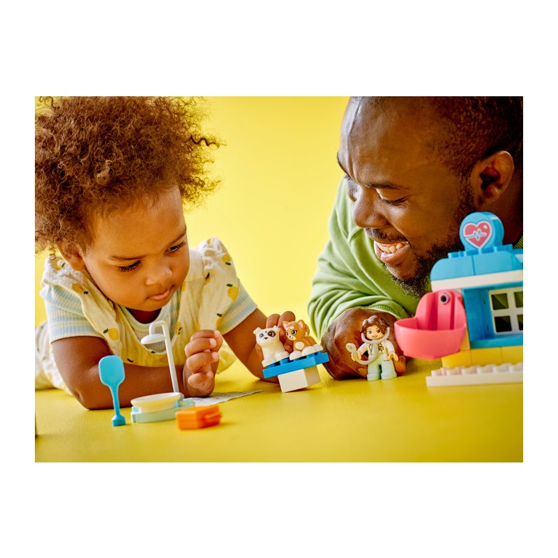 - Игрушка для ролевой игры по уходу за домашними животными для детей от 2 лет и старше — побалуйте малышей, любящих животных, и поощряйте их инстинкты заботы с помощью набора LEGO® DUPLO® «Посещение ветеринарной клиники».