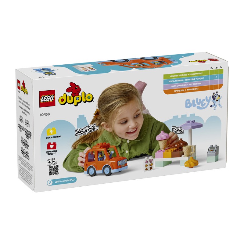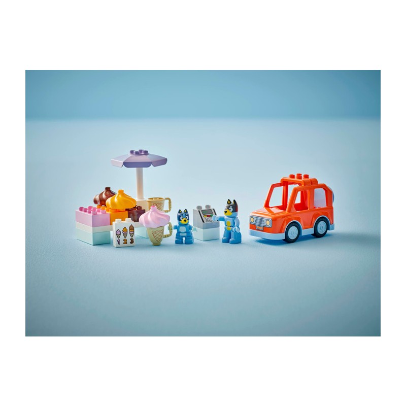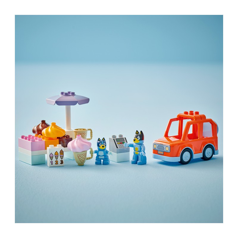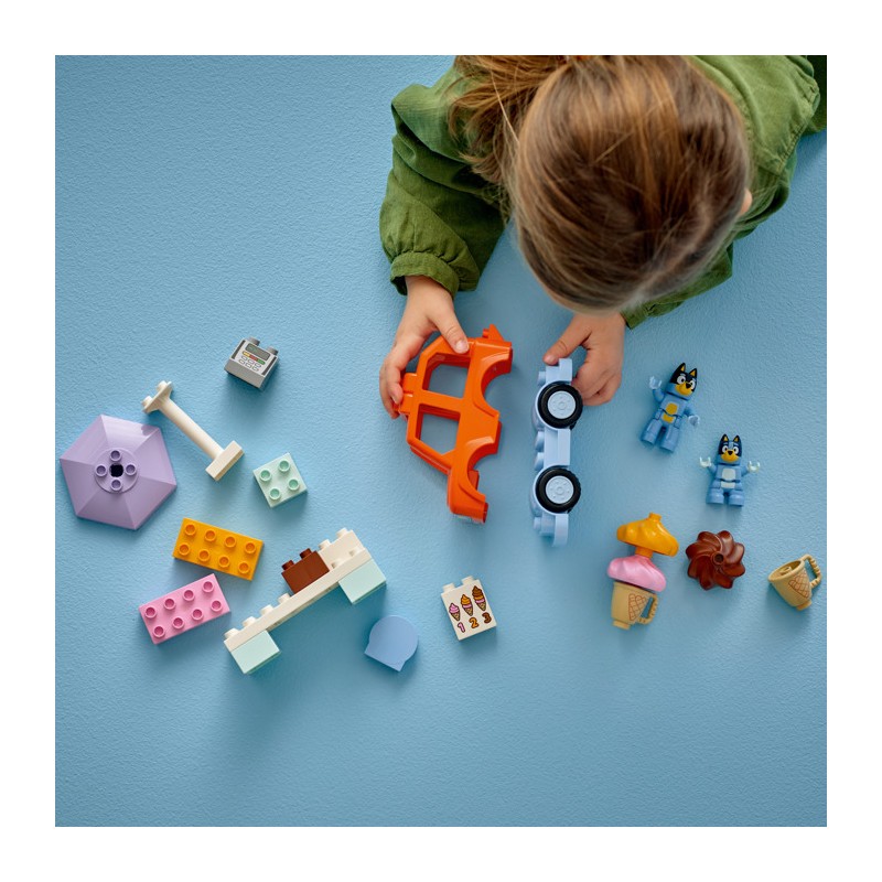 - Игровой набор с киоском мороженого и машинкой, вдохновленный телешоу Bluey, — перенесет дошкольников в увлекательный мир семьи Хилер с игрушкой LEGO® DUPLO® Bluey Ice Cream Trip with Bluey для малышей