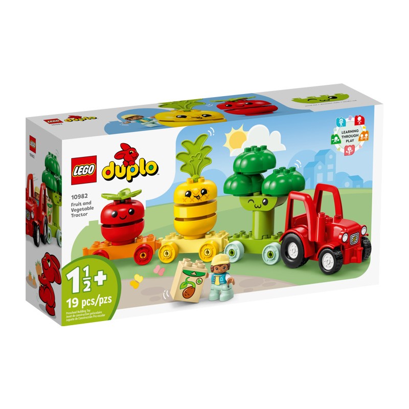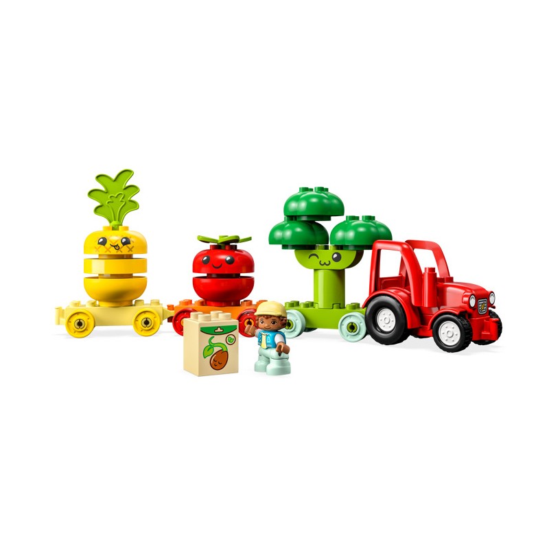 Игрушка LEGO® DUPLO® Мой первый трактор для фруктов и овощей (10982) предлагает множество забавных способов развивать обучение малышей. Дошкольники присоединяются к фермеру, собирающему урожай фруктов и овощей с помощью управляемого трактора и 3 прицепов. Дети в возрасте от 18 месяцев и старше оттачивают свои двигательные навыки, узнавая о том, как растут фрукты и овощи, и складывая кубики, чтобы растения «росли». Можно получить массу удовольствия от сортировки по цвету — дошкольники могут сопоставить растение с его прицепом или использовать свое творчество и самовыражение, чтобы смешать цвета или даже поменять лица местами!