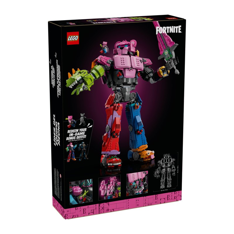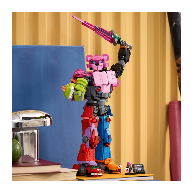 Наслаждайтесь захватывающим проектом по созданию фигурки робота из видеоигры, основанной на культовом персонаже-роботе, спасшем остров в первой главе Fortnite Battle Royale, прежде чем раскрыть его потенциал для демонстрации. Фигурку можно устанавливать в разных положениях: бёдра, руки, ноги и голова, а также в комплекте идёт игрушечный меч. Также доступна минифигурка того же персонажа, которую можно разместить на водительском сиденье в нагрудной кабине фигурки.
