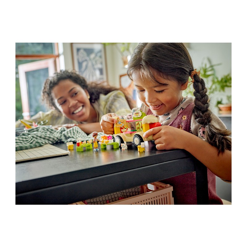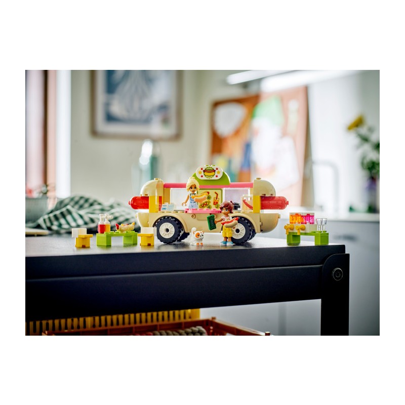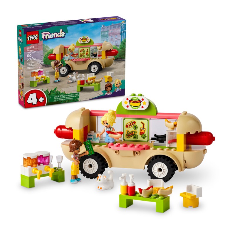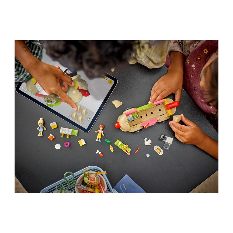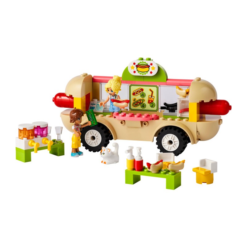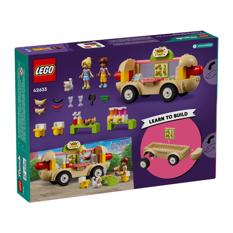 Дети от 4 лет и старше, которые любят играть в еду, могут придумать множество разных историй с этой игрушкой LEGO® Friends Hot Dog Food Truck (42633). Этот набор помогает детям учиться строить и включает в себя сборный грузовик и 2 мини-куколки, а также персонажа-кошку и аксессуары для еды, чтобы вдохновлять на ролевую игру.