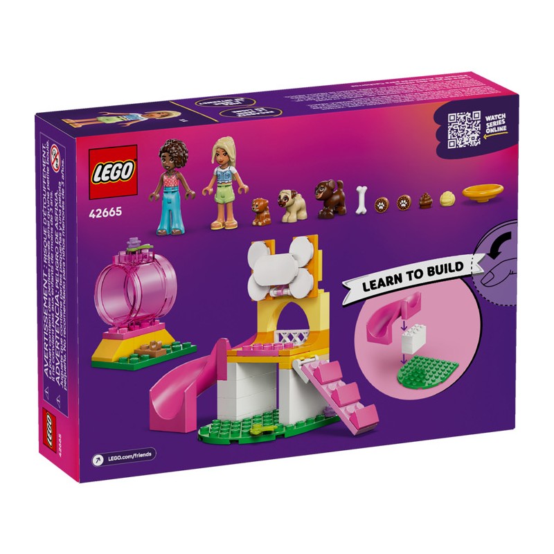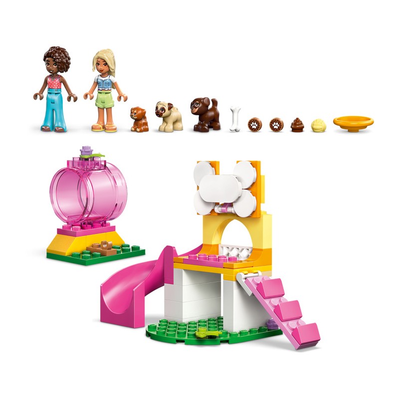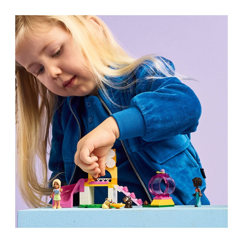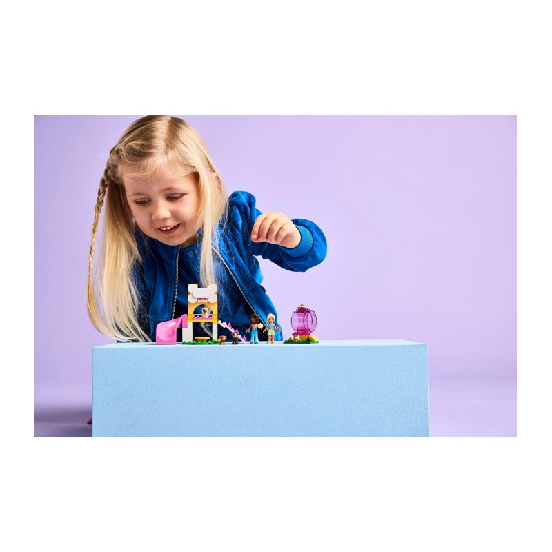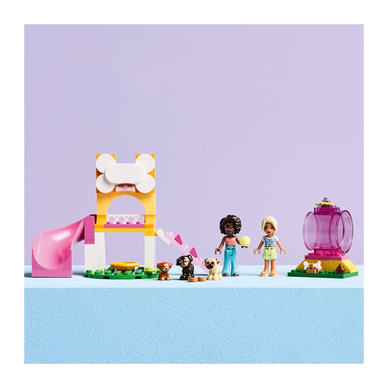 Игровая площадка для щенков из серии LEGO Friends вдохновляет любителей животных с четырёх лет и старше. В набор входят фигурки Алии и Сары, 3 собачки и множество аксессуаров. Друзья позволяют забавным щенкам скатиться с горки, залезть по лестнице и пробежать через тоннель. С мячиком, собачьим печеньем, косточкой и даже собачьими экскрементами - всегда найдётся чем заняться и что исследовать!