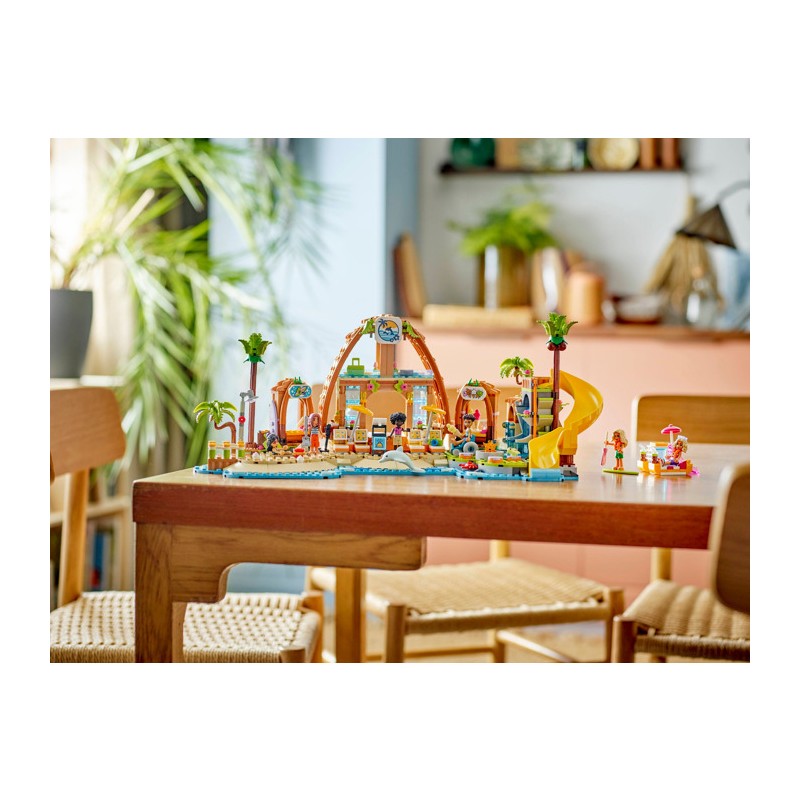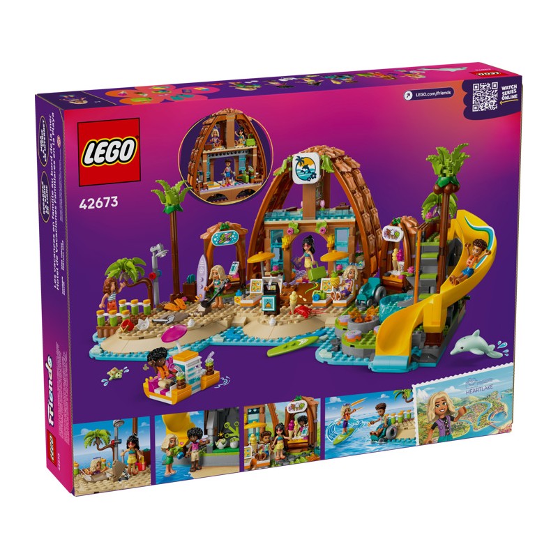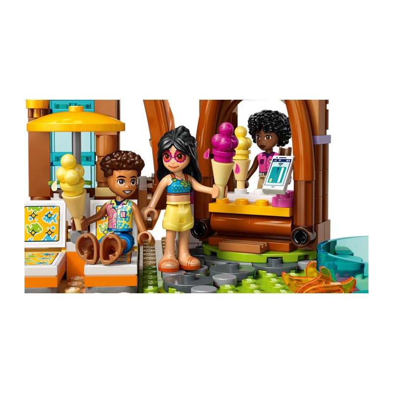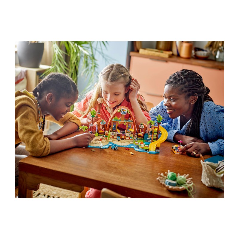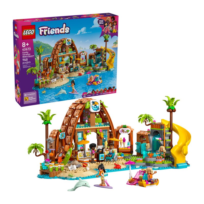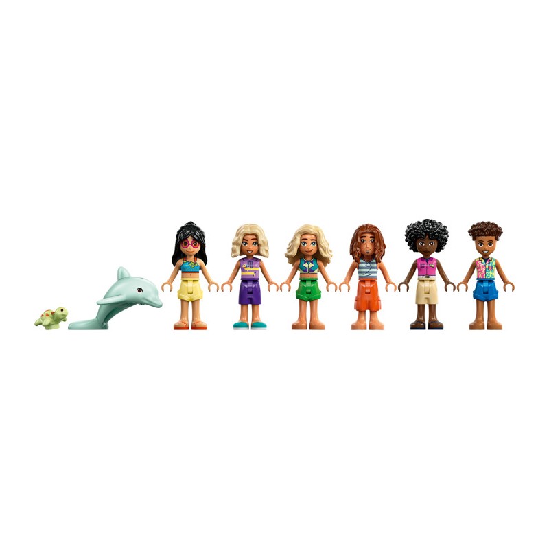 Наслаждайтесь семейным весельем в стиле отпуска с этим полным действий детским конструктором для девочек и мальчиков в возрасте от 8 лет и старше. LEGO® Friends Family Vacation Beach Resort (42673) полон историй и включает в себя 6 мини-кукол LEGO Friends, фигурки дельфина и черепахи, а также аксессуары для творческой игры.