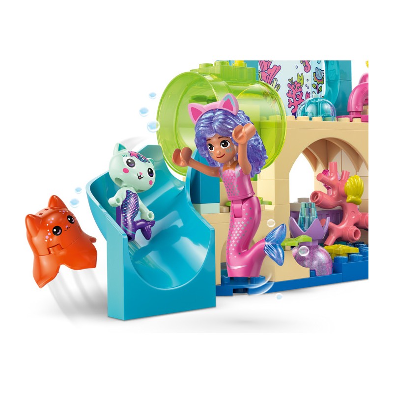 Этот игровой набор LEGO® «Кукольный домик Гэбби» полон ярких деталей и знакомых персонажей, включая мини-куколку Гэбби в костюме русалки, а также фигурки МерКот и Медузы. Дети могут присоединиться к Гэбби и её друзьям, чтобы исследовать красочный подводный мир, полный ракушек, растений и морских обитателей. Здесь есть множество интересных деталей, включая горку, гигантский пузырь, в котором может плавать МерКот, и движущиеся кораллы, открывающие спрятанный сундук с сокровищами. В набор входят красочные иллюстрированные инструкции, большой стартовый кубик и отдельные пакеты с одной сборной моделью в каждом, чтобы сделать творческий процесс сборки быстрым и увлекательным для маленьких строителей.