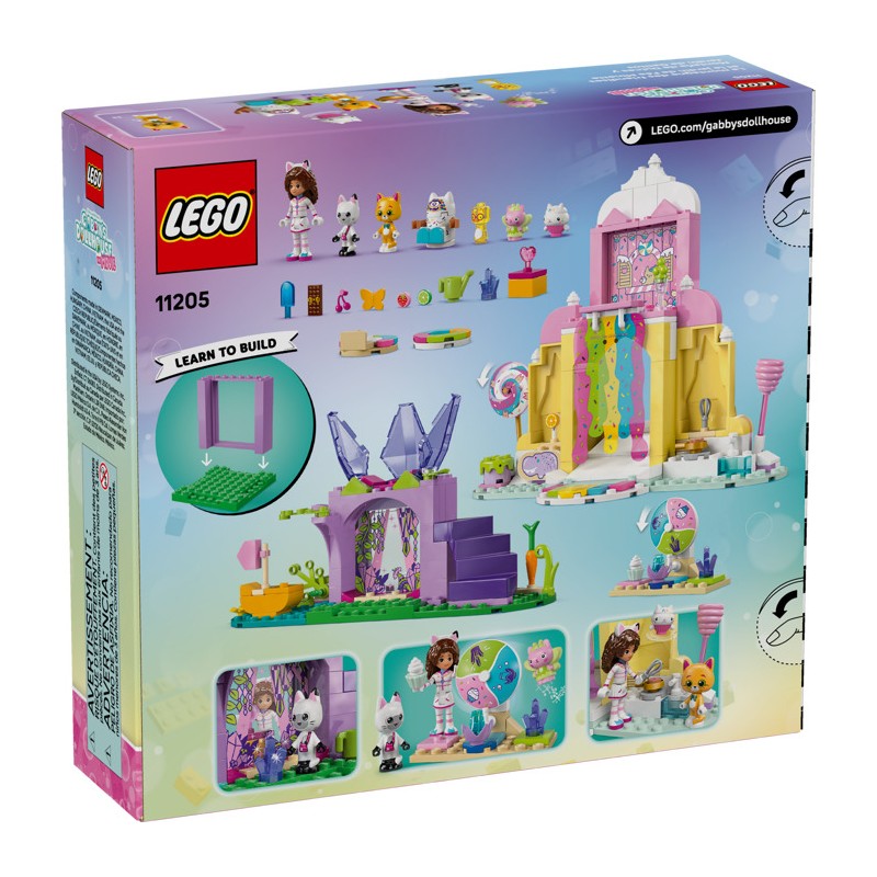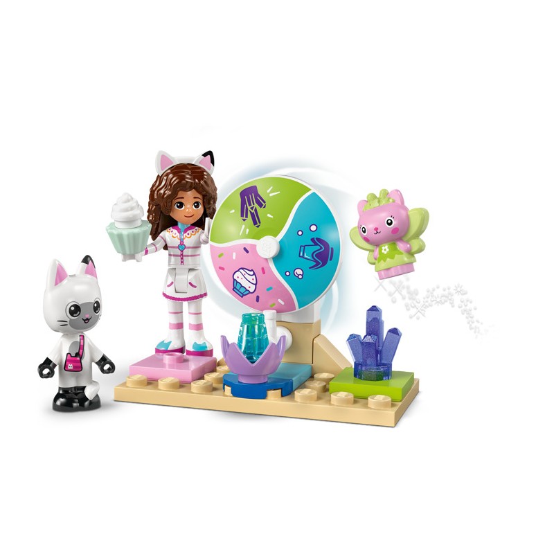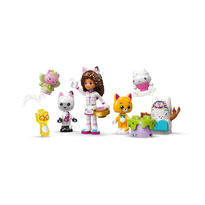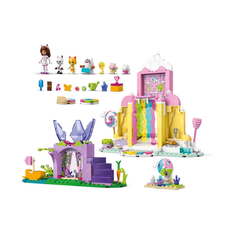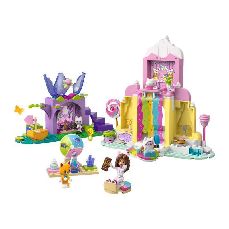 В набор входят 2 места съемок и множество фигурок LEGO, включая Гэбби, Панди Лапок и Фею Китти. «Гора сладостей» погружает малышей в волшебный мир сладких угощений. Персонажи могут кататься по красочному водопаду на пончиках. «Сад Китти» — это сказочное убежище, где Фея Китти восседает на своем хрустальном цветочном троне, а дети находят спрятанные драгоценности. Красочные иллюстрированные инструкции, большой стартовый кубик и отдельные пакеты с одной моделью в каждом пакете сделают творческий процесс для маленьких строителей быстрым и увлекательным.