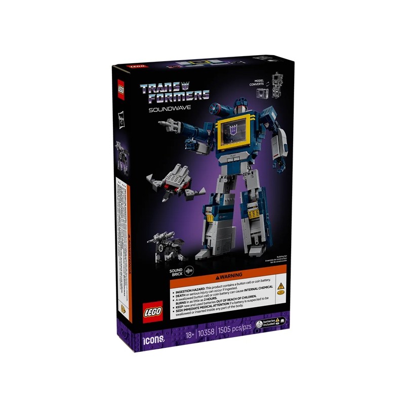 Создайте очаровательный центральный элемент интерьера или удивите близкого человека с этим набором для сборки LEGO® Icons Transformers: Soundwave (10358) для декора дома и офиса, разработанным для взрослых и поклонников этой эпической научно-фантастической серии фильмов. Соберите детальную копию культовой фигурки робота-десептикона из LEGO вместе с его верными спутниками Рэведжем и Лазербиком.