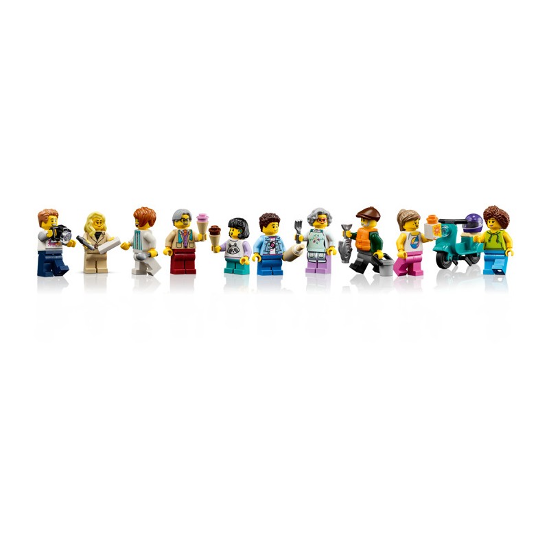- 10 минифигурок LEGO® — оживите сцену с помощью 10 минифигурок, включая торговца рыбой, владельца магазина мороженого, туриста (фанатского дизайнера набора!) и водителя скутера, а также 2 фигурок котят.