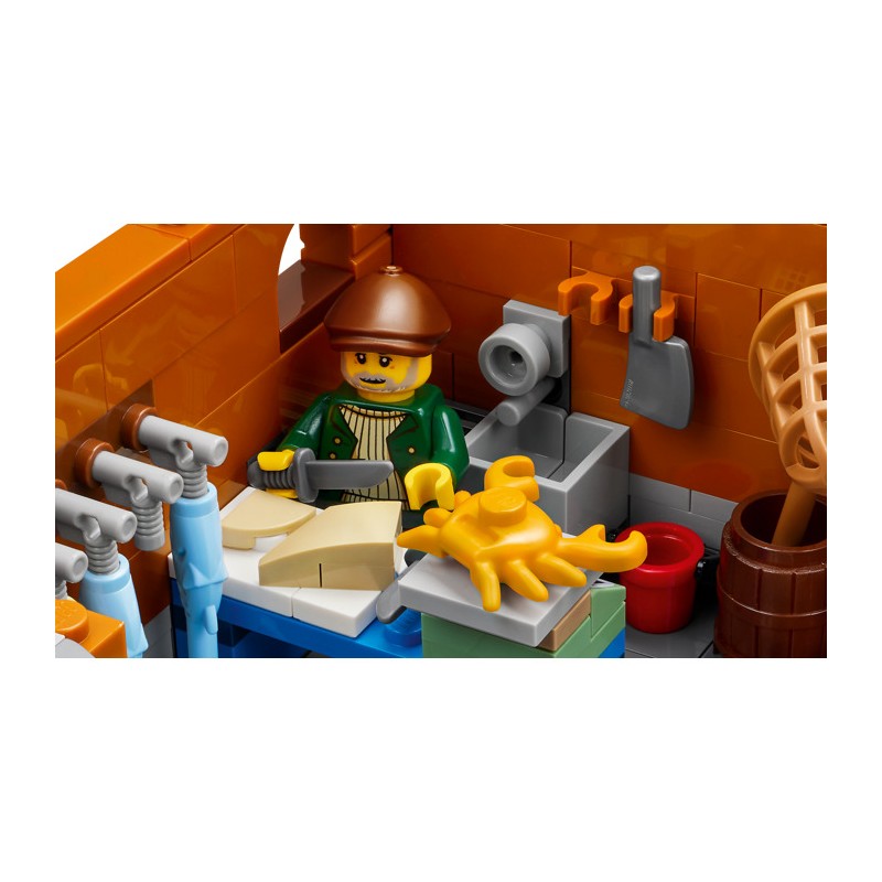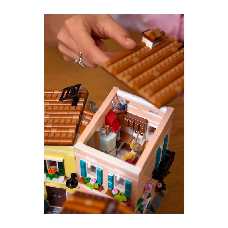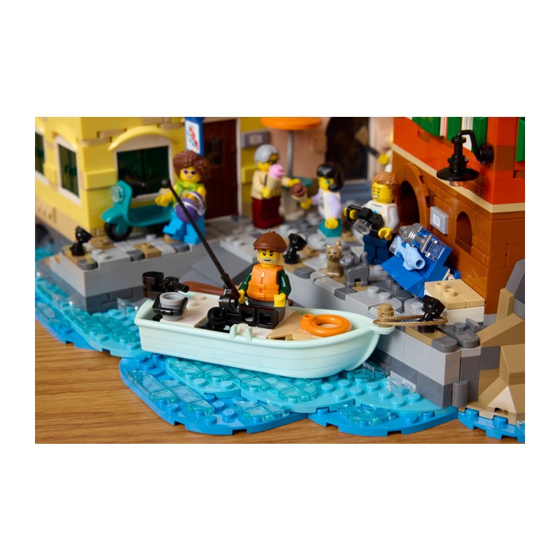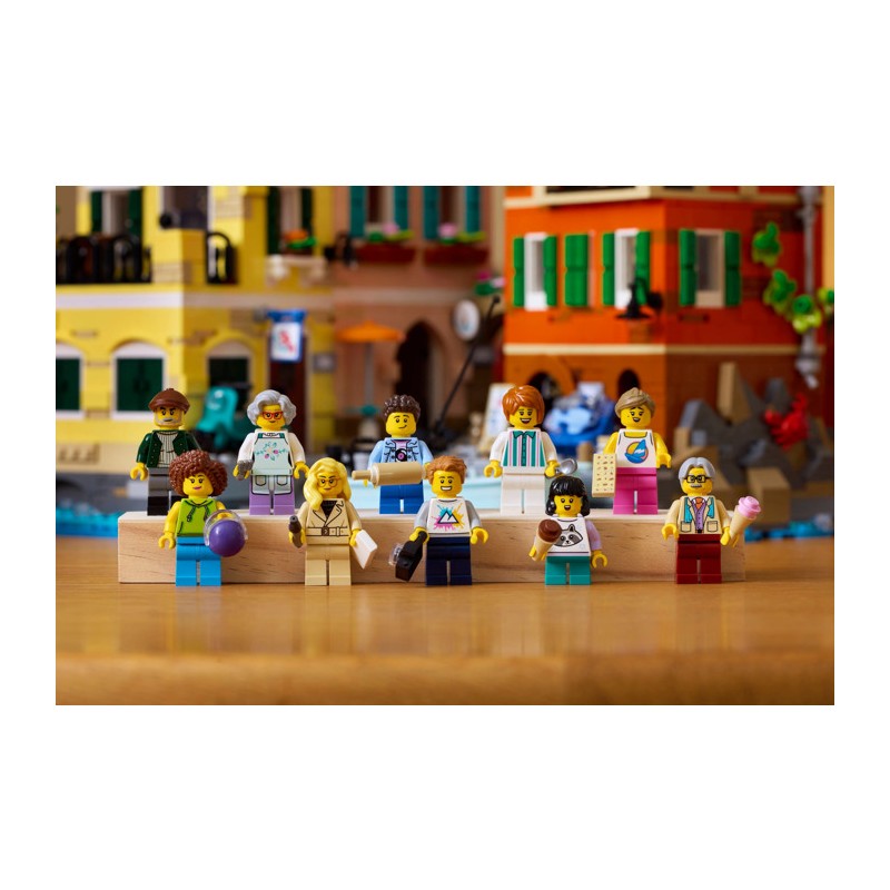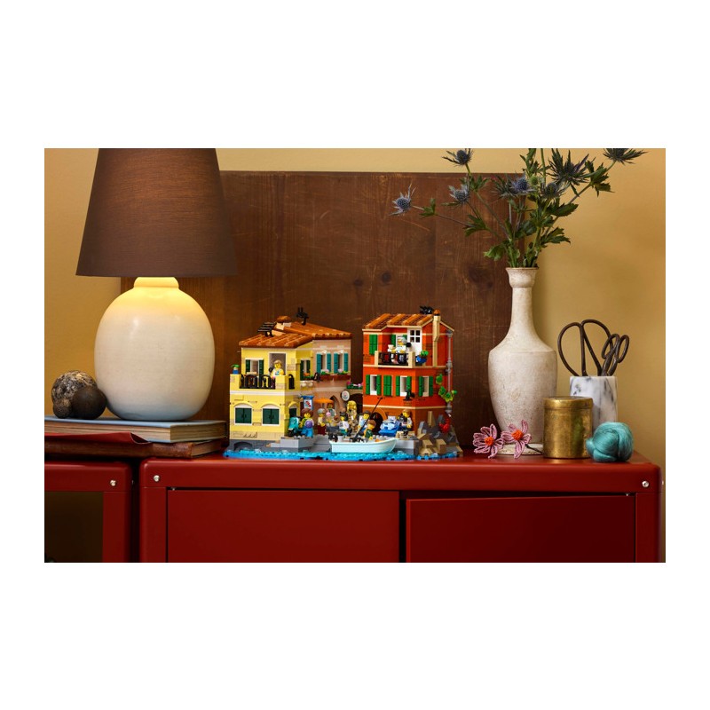 Поднимитесь на крыши и верхние этажи трёх зданий, чтобы увидеть их невероятно детализированные интерьеры. Здесь есть магазин мороженого, магазин снаряжения для дайвинга и рыбная лавка, а над ними — дома владельцев магазинов. Добавьте 10 минифигурок LEGO, чтобы воссоздать реалистичные сцены: рыбак в лодке на Средиземном море, бабушка показывает внуку, как готовить пасту «трофи» и фокаччу, заезжий ресторанный критик, пробующий местную кухню, водитель скутера, проезжающий по улице… и обратите внимание на маленького котёнка, поедающего украденную рыбу в переулке! Этот коллекционный набор LEGO Ideas содержит 3251 деталь.