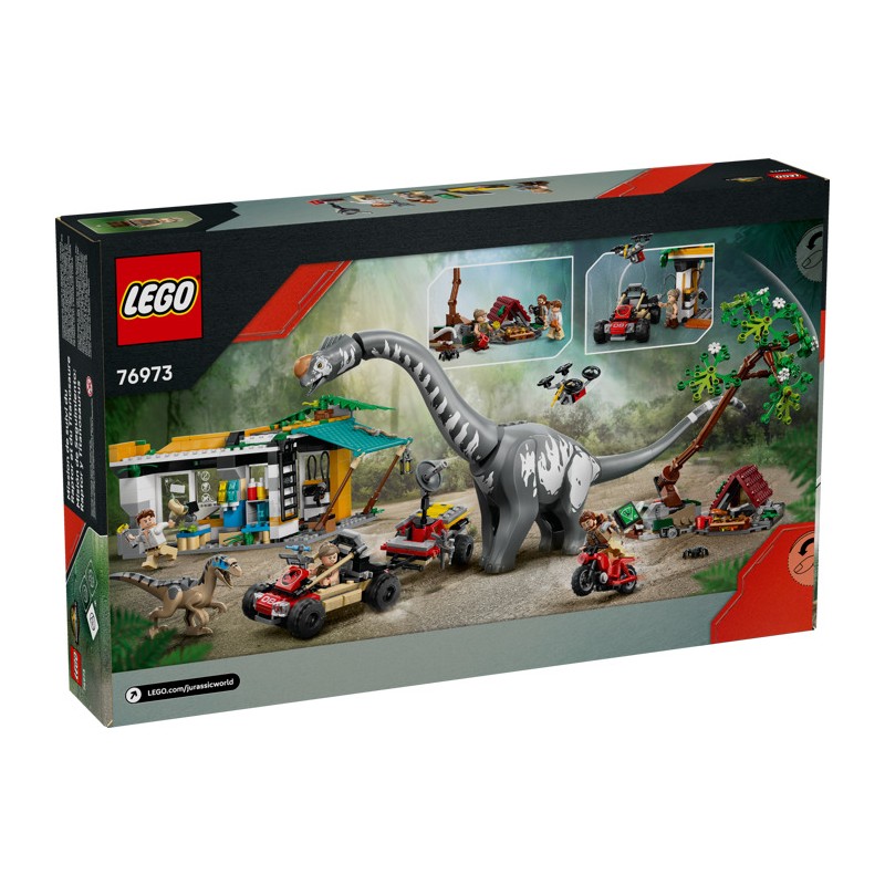 Захватывающие погони и экшн ждут детей и любителей фильмов в возрасте от 7 лет и старше в этом наборе для строительства LEGO® Jurassic World «Миссия по отслеживанию раптора и титанозавра» (76973). Подарок в виде динозавра для мальчиков и девочек включает в себя формованные фигурки титанозавра и велоцираптора и 3 минифигурки: Зора Беннетт, Мартин Кребс и доктор Генри Лумис. У велоцираптора подвижная челюсть, а у титанозавра подвижные шея, голова и хвост. Интерактивный игровой набор включает в себя зарядную станцию, внедорожник с прицепом, шприцевой ящик с 3 шприцами, мотоцикл, сборный дрон, зону лагеря с функцией падающего дерева и многое другое.