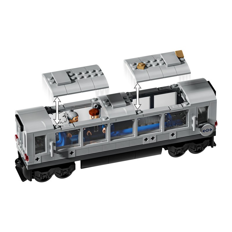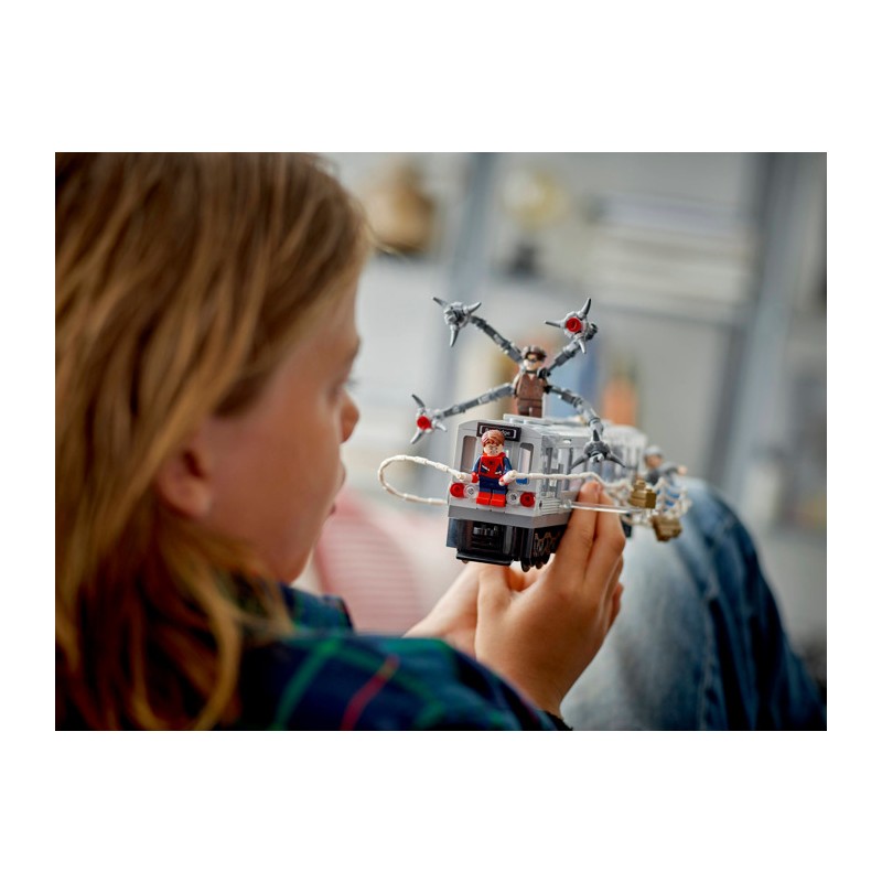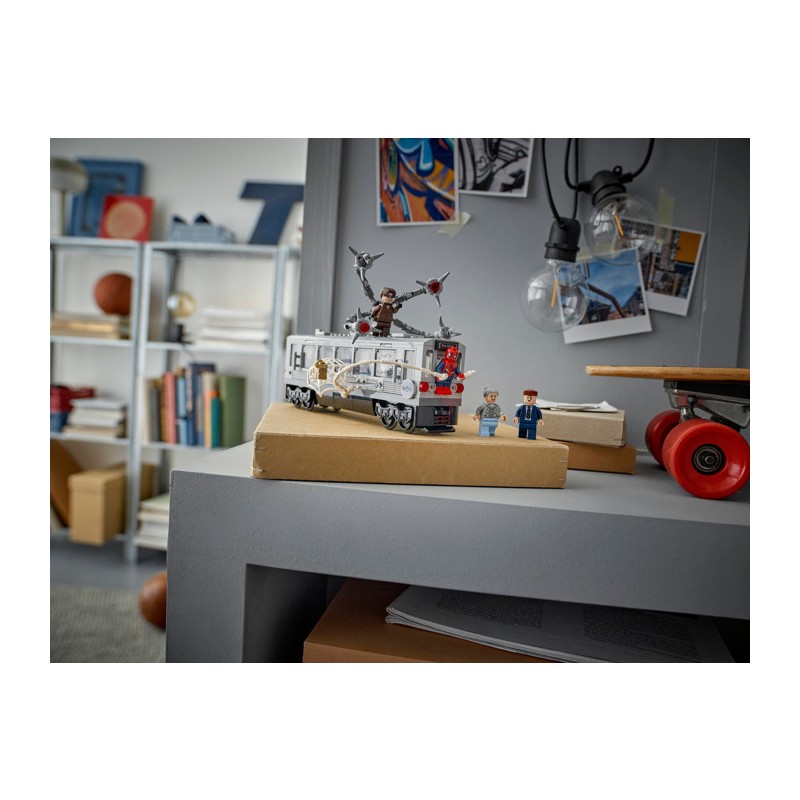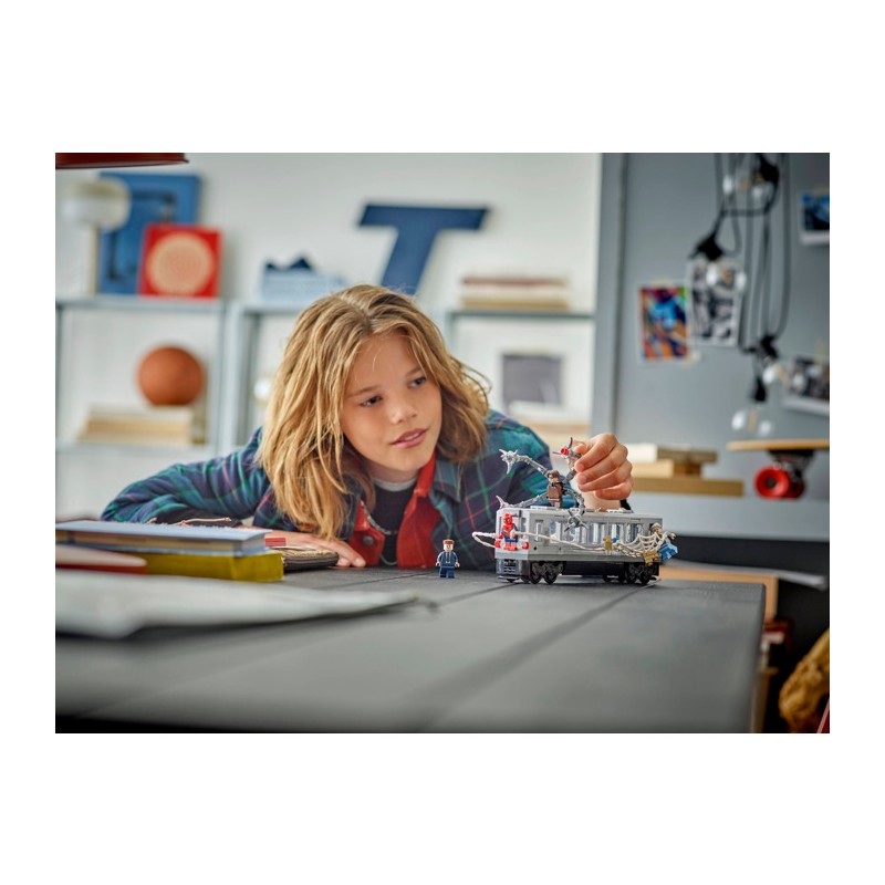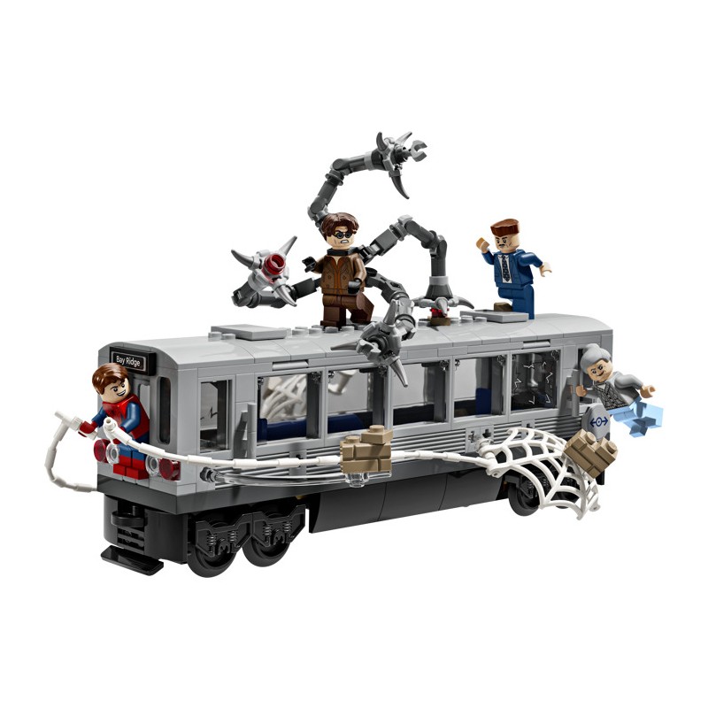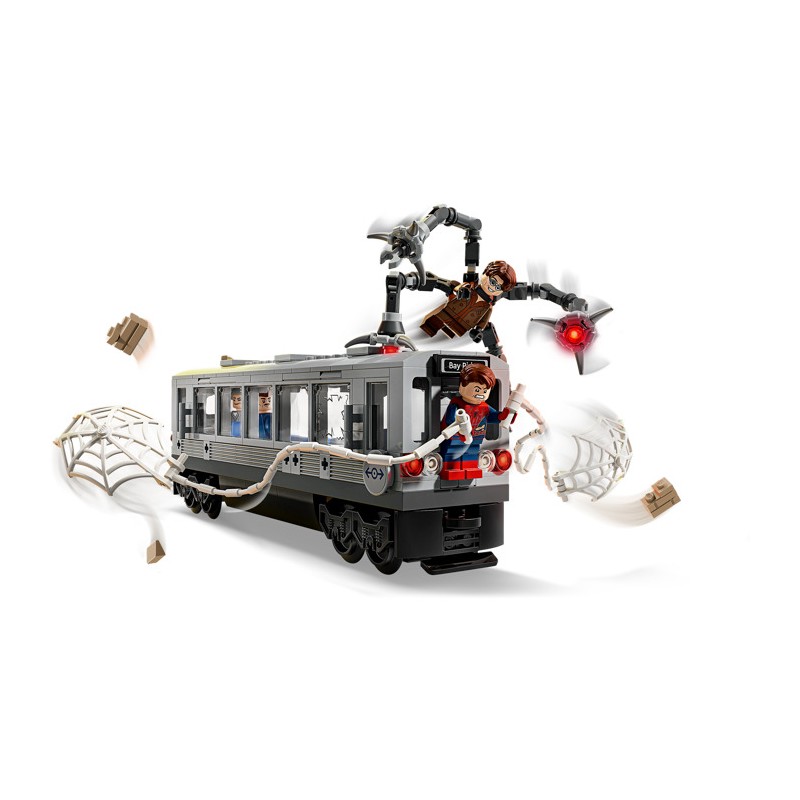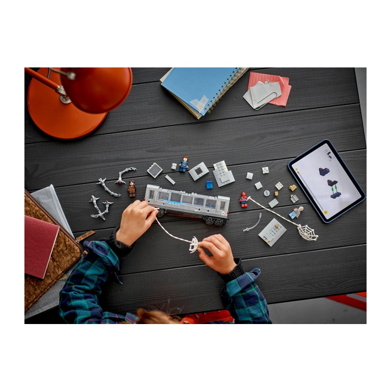 Этот набор для сборки поезда метро Super Hero основан на культовой сцене из фильма «Человек-паук 2» от Marvel Studios. В набор входят 4 минифигурки: Джей Джона Джеймсон, тётя Мэй, Человек-паук и Доктор Осьминог. Минифигурка Человека-паука имеет сменные головы – в маске и без – и большую паутину, которую можно прикрепить к поезду. Минифигурка Доктора Осьминога имеет 4 шарнирных щупальца, 2 из которых оснащены элементами «лазерного луча», а 2 – зажимами для крепления к поезду. Съёмная крыша обеспечивает доступ к салону поезда, где есть места для минифигурок пассажиров. Для ещё большего цифрового веселья строители могут увеличивать масштаб, вращать модели в 3D и отслеживать свой прогресс с помощью интуитивно понятного приложения LEGO Builder. Содержит 393 детали.