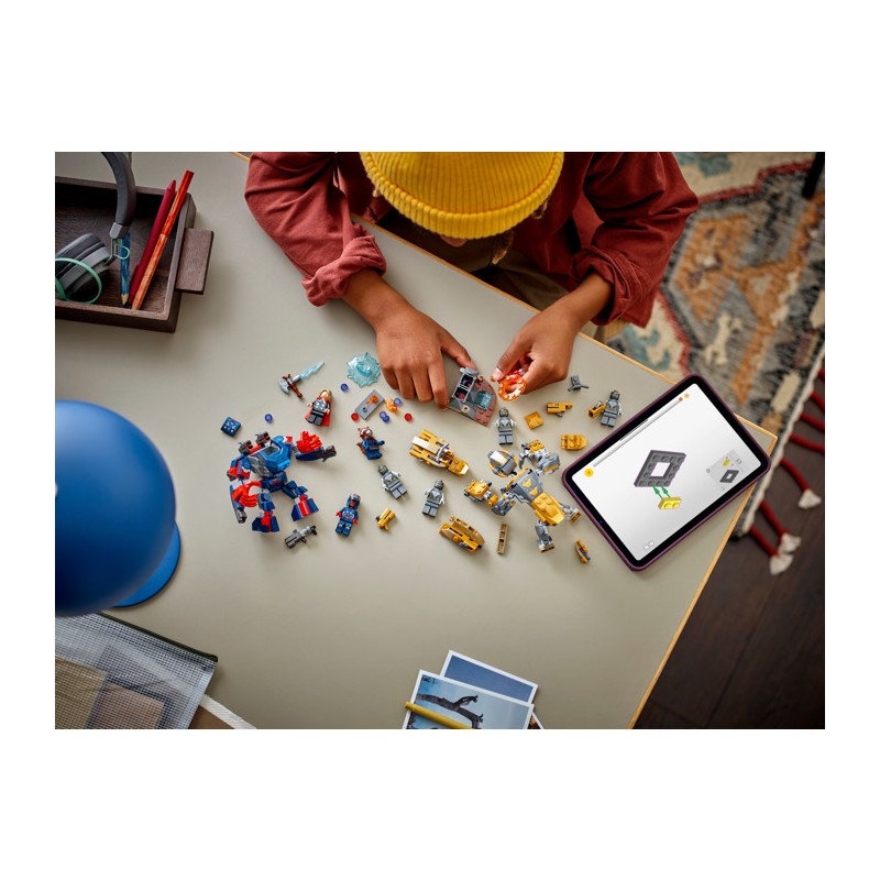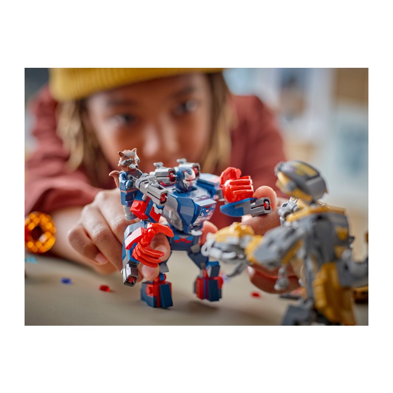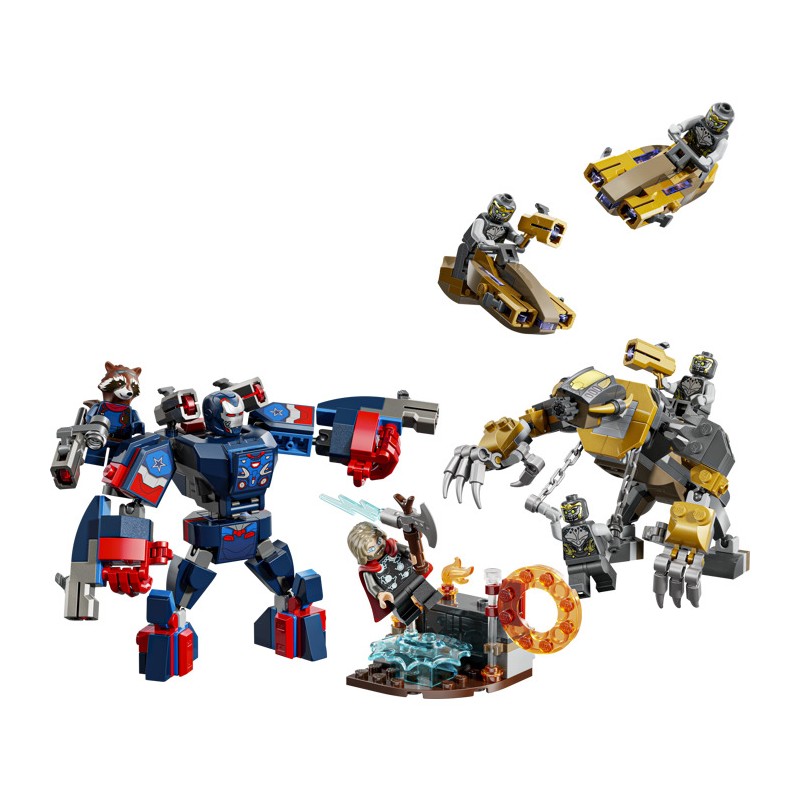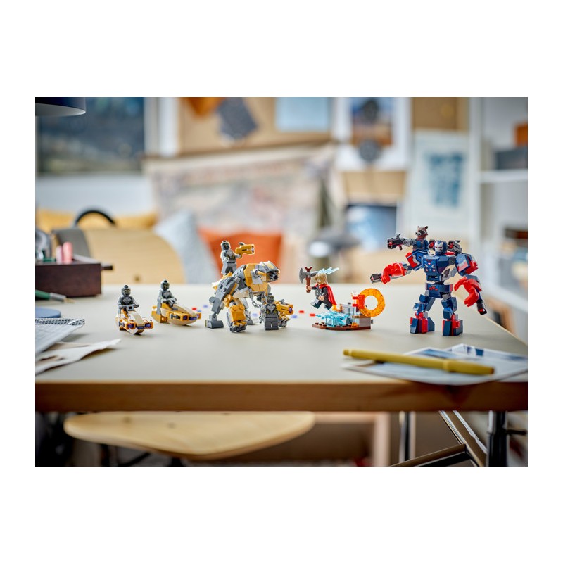 Этот сборный набор супергероев, основанный на культовой сцене битвы из фильма «Мстители» Marvel, включает в себя две большие фигурки LEGO: робота Железного Патриота, вооруженного четырьмя шипометами, и грозную гориллу Читаури. Обе фигурки шарнирно соединены для динамичной игры. В набор входит 7 минифигурок: Железный Патриот MK2; Ракета с большим шипометом; Тор с Штормбрейкером; и четыре Читаури, две из которых вооружены золотыми шипометами. Другие особенности включают в себя два реактивных скутера и небольшую игровую площадку для Тора, где можно хранить запасные шипы. Этот набор для сборки и игры подключается к набору «Мстители: Финал. Финальная битва» (76323) для более увлекательной игры. Строители также могут увеличивать и вращать модели в 3D с помощью веселого и интуитивно понятного приложения LEGO Builder. Содержит 373 детали.