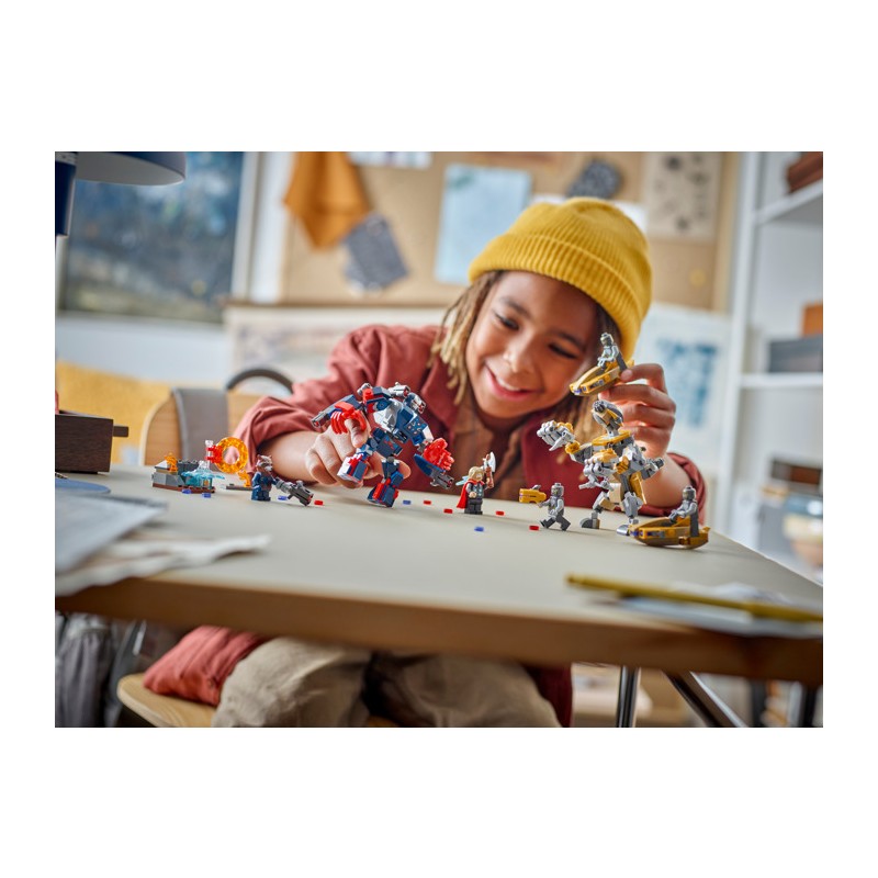 LEGO® ǀ Marvel Мстители: Финал Тор против Читаури (76322) — это высококачественная сборная игрушка-супергерой для детей от 8 лет. Этот универсальный подарок для поклонников Marvel идеально подходит для любителей сборных роботов, героев боевиков и фильма «Мстители: Финал» от Marvel Studios.