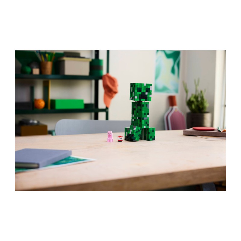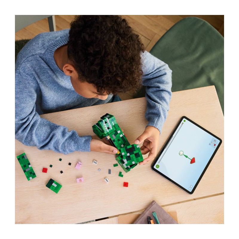 Эта сборная игрушка, воссоздающая культового Крипера из Minecraft, имеет высоту более 21 см (8 дюймов). У нее 4 подвижные ноги и подвижная голова, которая движется из стороны в сторону и наклоняется вверх и вниз. Передняя часть головы фигурки Крипера LEGO Minecraft отсоединяется, открывая внутреннее пространство, содержащее Крипера первой версии и элемент TNT. Для дополнительного цифрового веселья строители могут использовать интуитивно понятное приложение LEGO Builder для увеличения масштаба, вращения моделей в 3D и отслеживания прогресса. Содержит 665 деталей.