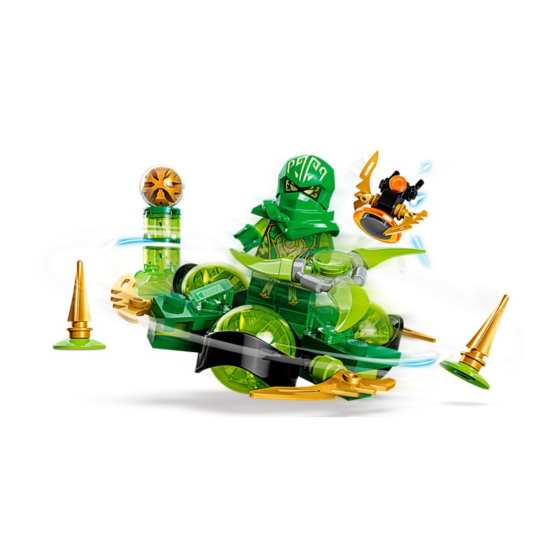 С помощью этого набора мира LEGO Ninjago поклонники ниндзя в возрасте от 6 лет и старше смогут тренировать своего героя-ниндзя и оттачивать навыки Кружитцу с помощью силы дракона. Этот игровой набор со спиннерами подарит детям массу удовольствия, когда они снова и снова отправляют Ллойда Сила Дракона через полосу препятствий в большом лесу. По пути Ллойд должен уклоняться от шипастых препятствий, победить Имперского дроида и вырвать из чаши силовое ядро Золотого Дракона. Существует также элемент силы зеленого дракона.