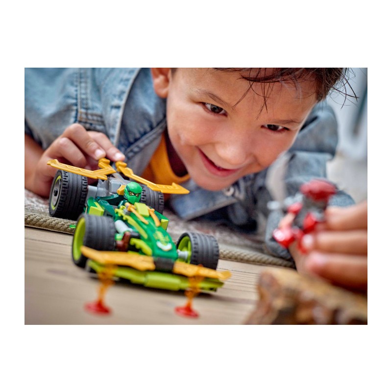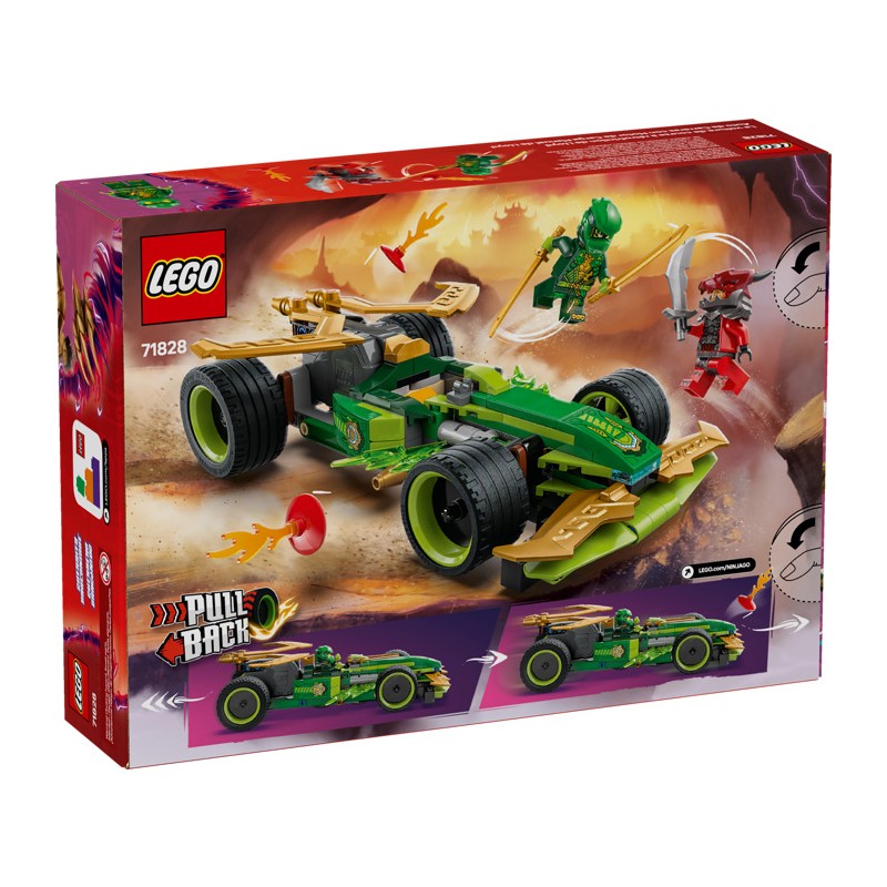 Порадуйте своего маленького ниндзя первой в истории игрушкой гоночной машинки NINJAGO с инерционным механизмом! Мальчики и девочки в возрасте от 7 лет и старше могут воссоздать сверхбыстрые действия из 3-го сезона телешоу NINJAGO Dragons Rising с гоночной машинкой Lloyd's Pull-Back (71828), оттягивая ее назад, отпуская и наблюдая, как она мчится вперед. Элегантная гоночная машинка имеет 4 шины, кабину для минифигурки и украшена зелеными молниеносными лезвиями.