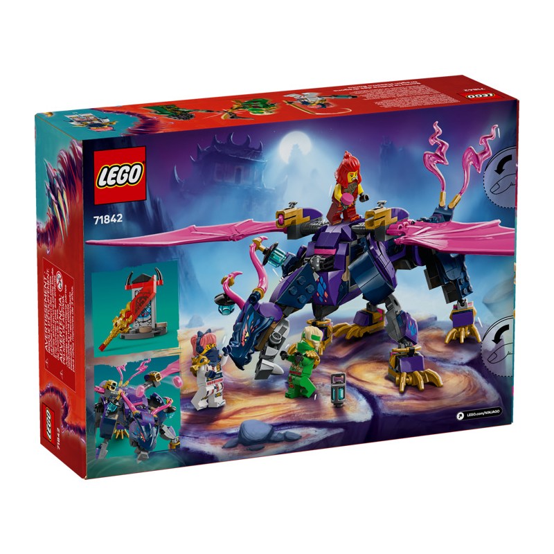 Игрушка LEGO® NINJAGO® Rontu the Master Dragon (71842) позволяет фанатам ниндзя в возрасте от 7 лет и старше воссоздавать захватывающие сцены из 3-го сезона телешоу NINJAGO Dragons Rising. Этот набор для детей включает в себя игрушечного дракона с подвижным хвостом, ногами, крыльями, головой и челюстью, 2 положения для размещения минифигурки на спине и шипомет под каждым крылом.