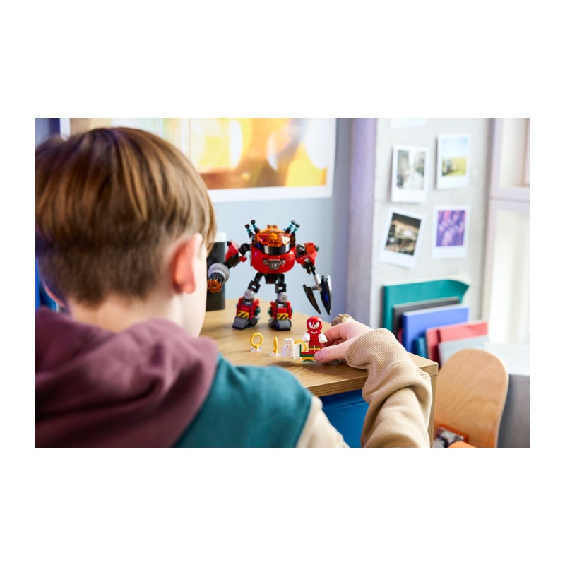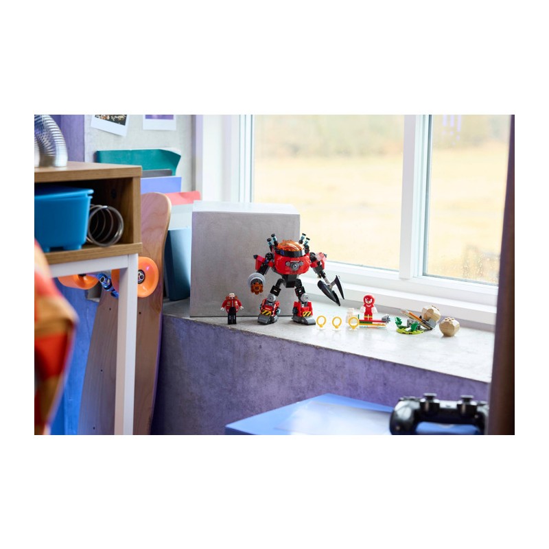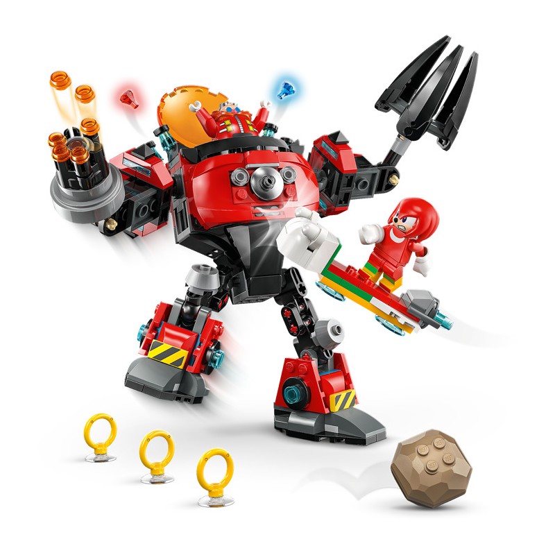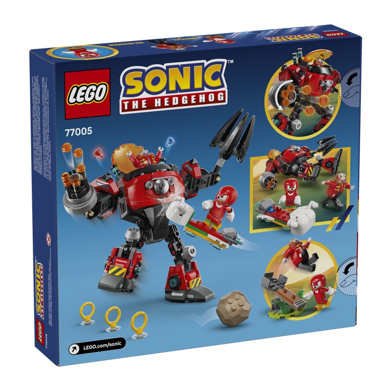 Подарите поклонникам игрушек Соника, мальчикам и девочкам от 8 лет, захватывающие приключения с этим набором LEGO® Sonic the Hedgehog™ «Наклз против доктора Эггмана: Робот-дробилка яиц» (77005), полным функций и возможностей. Этот подарок для геймеров включает в себя подвижного робота с открывающейся кабиной, вращающимся шестиствольным пусковым устройством, огромной вращающейся клешней и шарнирными конечностями для интерактивной игры. Два персонажа, ехидна Наклз и доктор Эггман, готовы к увлекательным ролевым играм, а также ховерборд, катапульту с двумя валунами, тремя золотыми кольцами и двумя изумрудами Хаоса.
