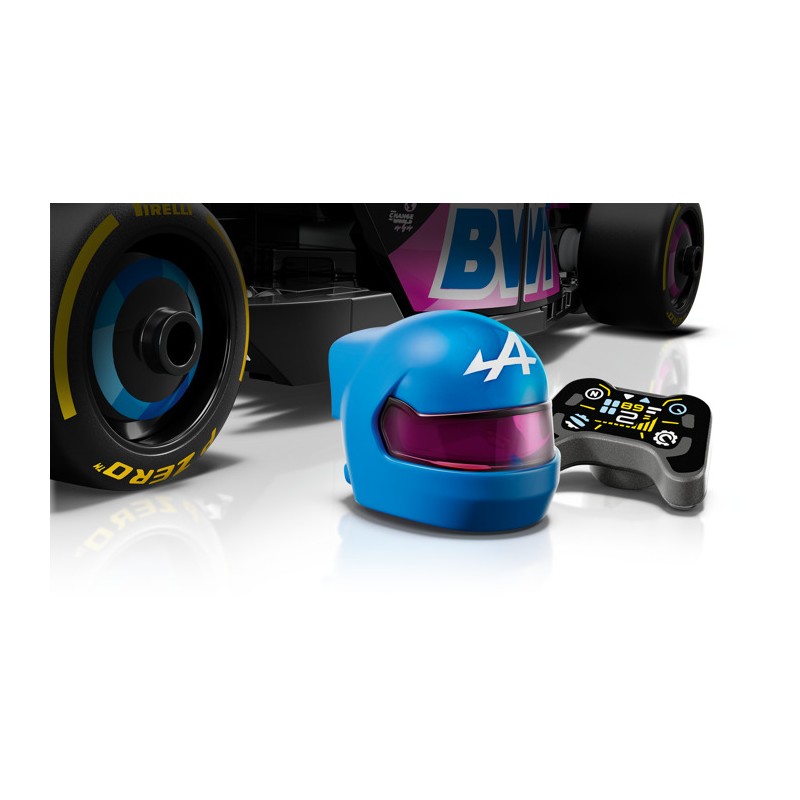 Модель автомобиля F1 оснащена кабиной, которая открывается путем подъема дуги Halo, задним крылом, поперечным рычагом подвески, наклейками спонсоров и более широкими задними шинами с надписью «Pirelli». В комплект гоночной машины также входит минифигурка водителя в альпийском костюме и крылатый шлем для размещения в кабине.