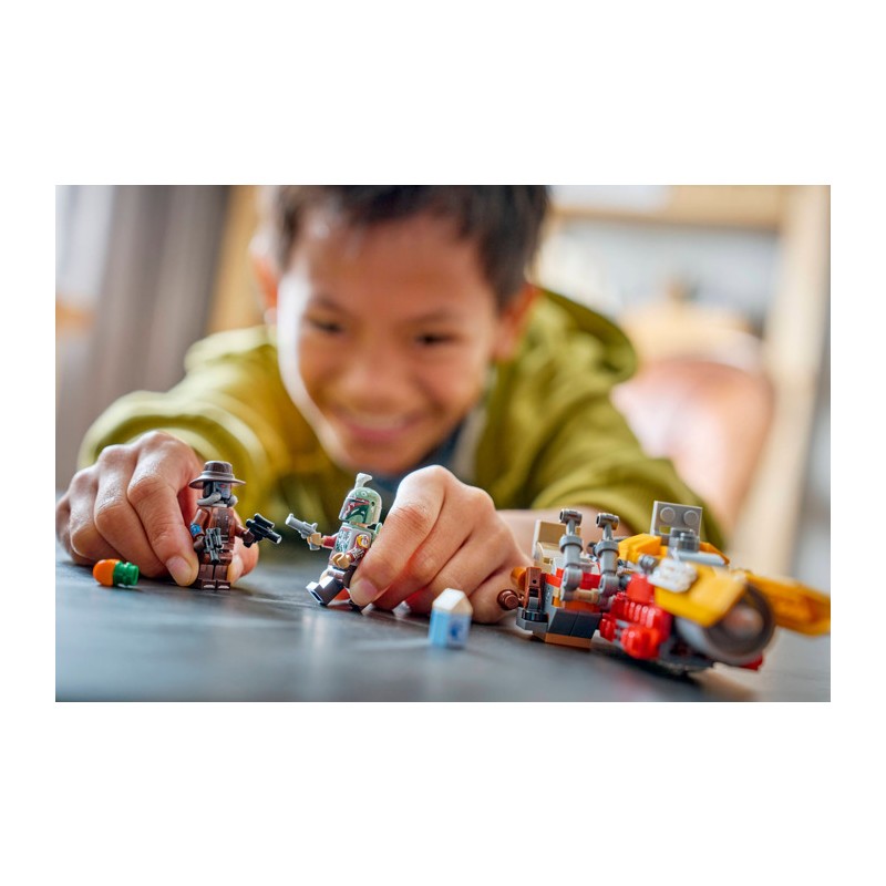 Объединитесь с Коббом Вантом в захватывающих сражениях против Кэда Бейна с этим увлекательным конструктором LEGO® Star Wars ™ (75437). Соберите детализированную модель спидера Кобба Ванта из второго сезона сериала «Звёздные войны : Мандалорец». В комплекте есть сиденье водителя для минифигурки Кобба Ванта, магазин для пистолета и потайной отсек для хранения культовых аксессуаров, включая шлем Боба Фетта и пакет с молоком банты. Минифигурка Кэда Бейна, входящая в комплект, вооружена двумя бластерными пистолетами, а у Кобба также есть реактивный ранец для воздушных сражений. Этот конструктор станет фантастическим подарком для мальчиков, девочек и всех поклонников «Звёздных войн : Мандалорец» или «Звёздных войн : Боба Фетт» в возрасте от 7 лет и старше, а также отличным способом разбудить детское воображение в процессе игры. Дети смогут наслаждаться интуитивно понятным конструированием с помощью приложения LEGO Builder, масштабированием и вращением модели в 3D-режиме, а также сохранением и отслеживанием прогресса — всё это прямо в приложении. Набор содержит 207 деталей.