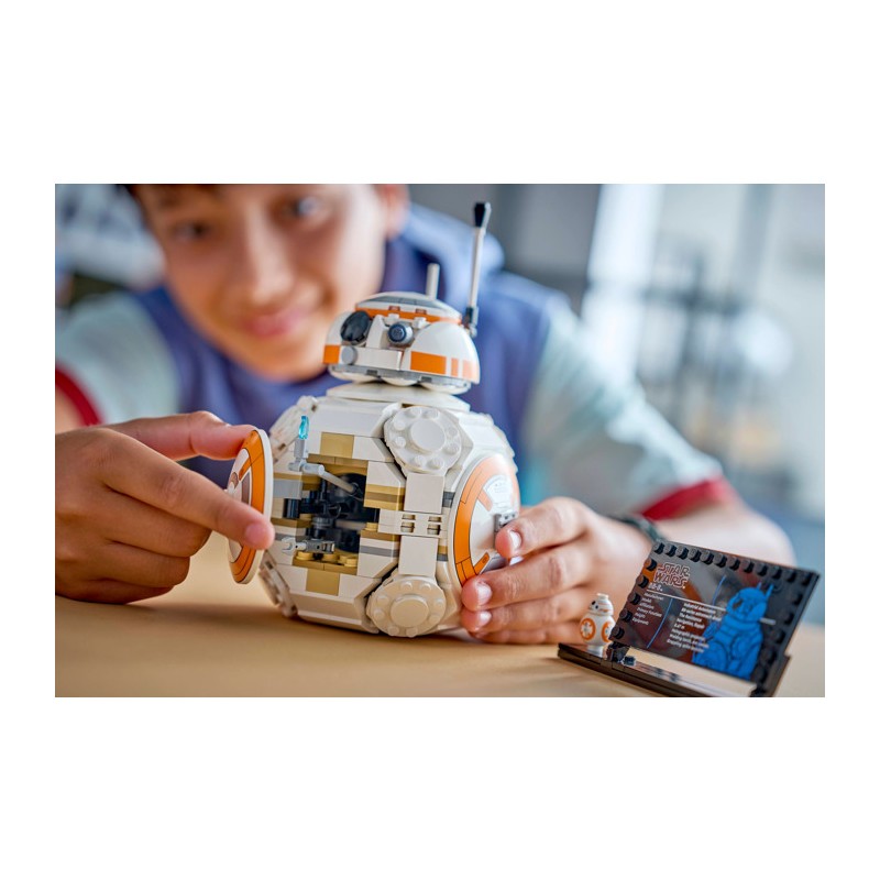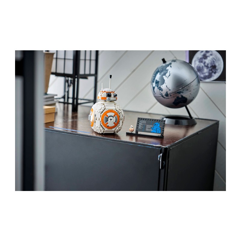 Разместите сборную модель рядом с информационной табличкой о BB-8 и стандартной фигуркой BB-8 из LEGO, чтобы создать очаровательный декор в стиле «Звездных войн» , который вызовет улыбку на лице любого поклонника.