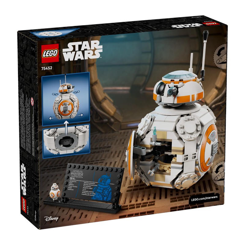 Доведите очарование до предела с помощью этого головокружительного конструктора LEGO® Star Wars ™ BB-8™ «Астромеханический дроид». Используйте кубики LEGO, чтобы воссоздать аутентичные детали культового дроида, каким он предстал в фильме «Звёздные войны : Пробуждение силы». Перемещайте BB-8 по ровной поверхности, чтобы его голова вращалась в случайных направлениях. Откройте люк на теле BB-8, чтобы увидеть «поджигающую руку», похожую на ту, которой он показал Финну «большой палец вверх».