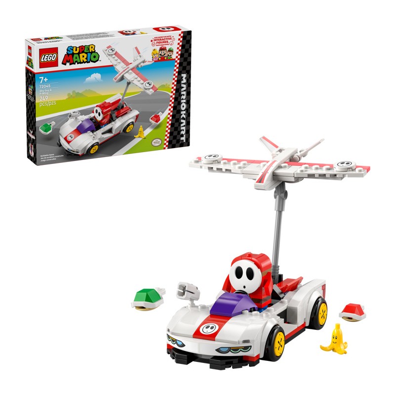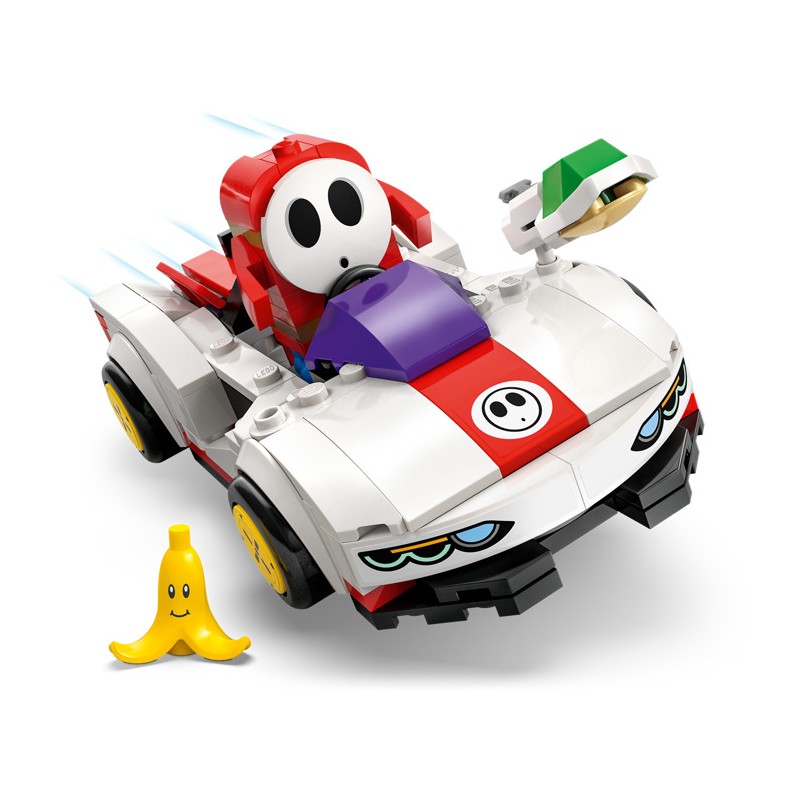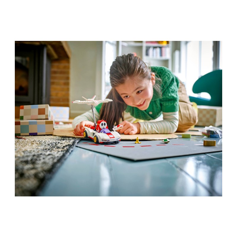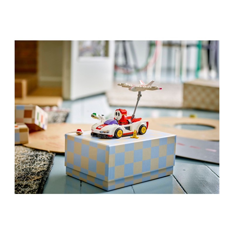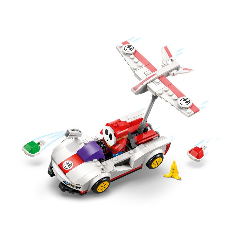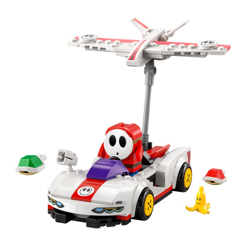 - LEGO® Super Mario™: Mario Kart™ — детский конструктор. Собирайтесь вместе с Скромнягой в его собранном из кубиков самолете P-wing для гонок, дрифта, планирования и метания снарядов.
