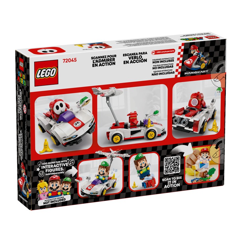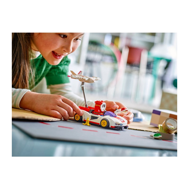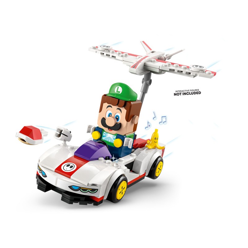 - Интерактивная игра — управляйте P-Wing с LEGO® Mario™, LEGO® Luigi™ или LEGO® Peach™ (фигурки не входят в комплект), чтобы активировать звуковые и визуальные эффекты Mario Kart™ для старта гонки, дрифта, планирования и многого другого.