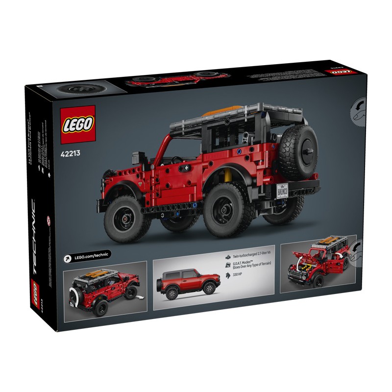 Вдохновляйте детей на смелые мечты, создавая бесконечные внедорожные приключения с набором для сборки модели внедорожника LEGO® Technic™ Ford Bronco® (42213) для мальчиков и девочек от 9 лет. Набор отличается реалистичными деталями, включая открывающиеся двери и подвеску с передней осью и ведущим задним мостом.